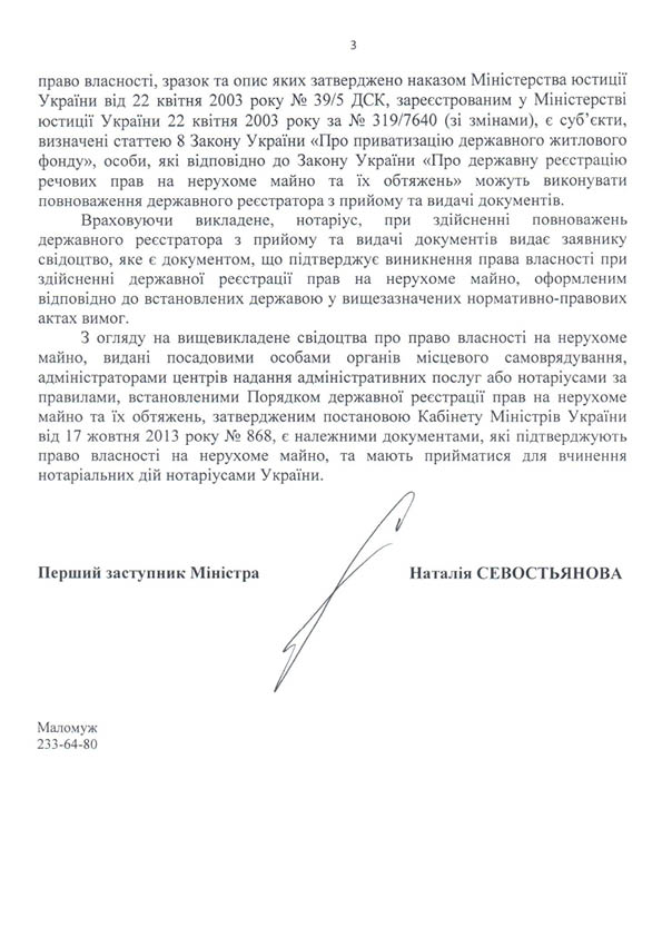 Минюст своим письмом поставил все точки над «і», разъяснив, что свидетельства, выданные частными нотариусами являются полностью законными и приравниваются к свидетельствам, выданным государственными регистраторами.