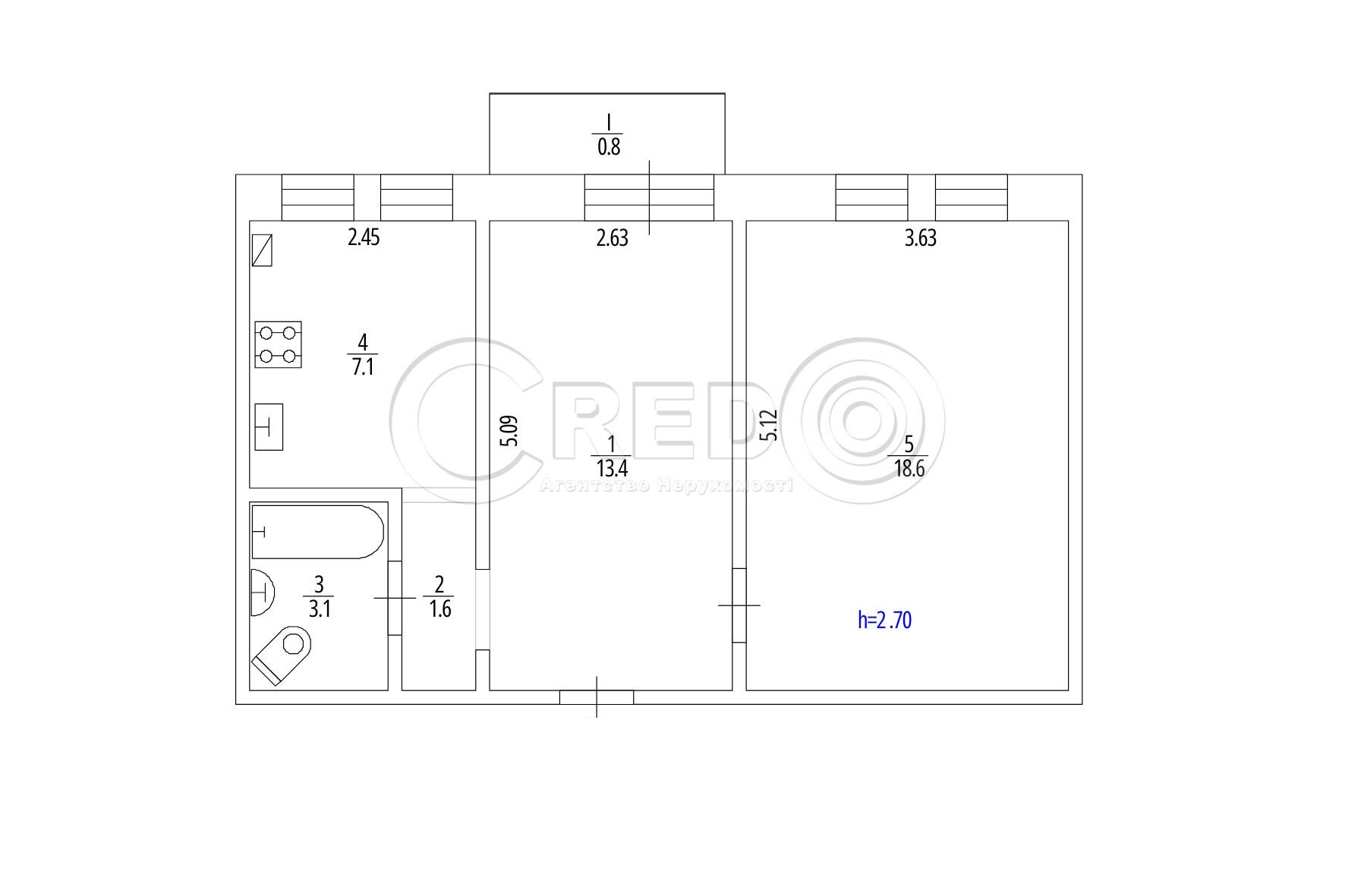 Загальна площа: 44 кв.м