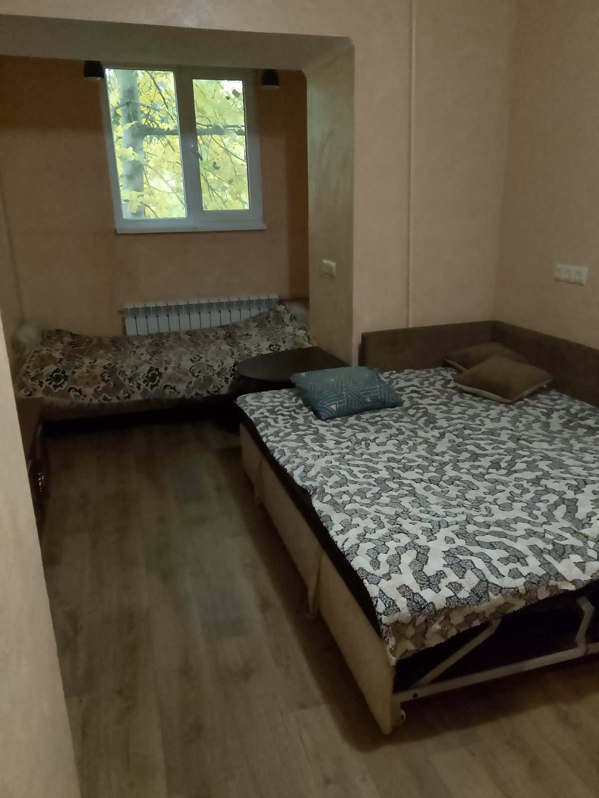 2- й,самий комфортний поверх,квартира має роздільний санвузол,з кімнати виходить великий засклений балкон Квартира світла,не кутова,вікна квартири виходять на південь дуже тепла,повністю обставлена,є необхідні меблі- шафа,2 спальний розкладний диван в гарному стані,не продавлений,чистий,вбудовані кухонні меблі,стіл,стільці) та техніка (холодільник,пральна машина,електрична плита нова 3 духовкою) МОЖНА З ЧЕМНИМ КОТИКОМ