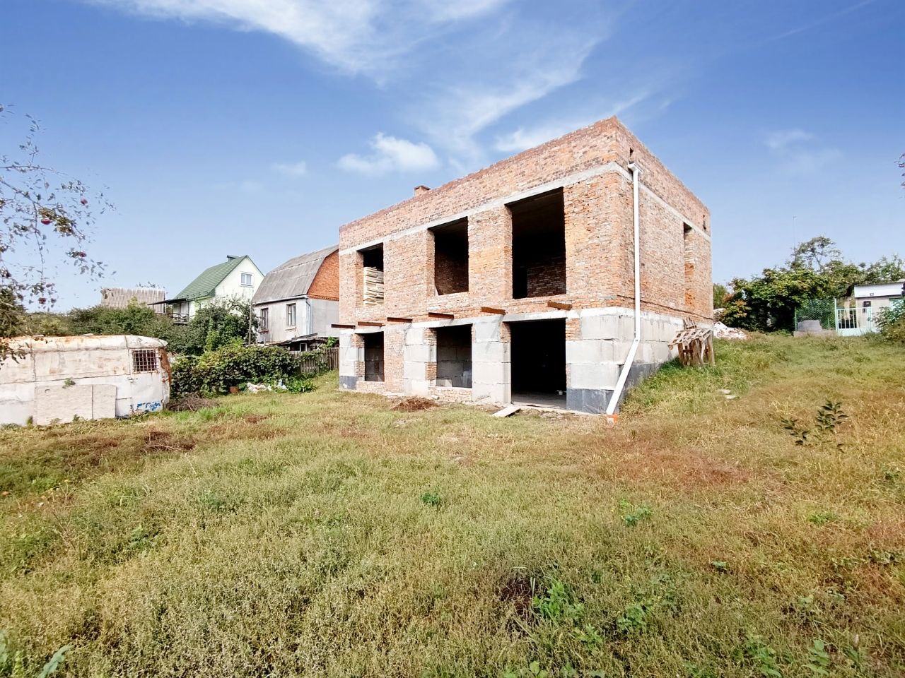 Продам Будинок (коробка) два поверхи 173 м2 на земельній ділянці 6 соток, м. Хмельницький р-н. Лезнево вул. 1-й Купайла проїзд. СТ «Світанок». Дорога до ділянки асфальтована, 450 метрів до зупинки громадського транспорту. Характеристики: - коробка в два поверхи - 3-и кімнати (23.1+30.5+17 м.кв.) + велика вітальня-кухня (55 м.кв.) - стеля 1 пов. h = 2.85 м., 2-й h = 3.0 м. - зовнішні стіни в півтори цегли (без утеплення) - перекриття поверху залізобетонне - дах: плаский, рубероїдна покрівля даху - зроблено вивід під камін - усі комунікації: вода свердловина, каналізація септик, газ на ділянці, світло на ділянці 3 фази 5 кВт (є можливість збільшити до 15) - лічильник на світло Ділянка 6 соток в приватній власності: Кадастровий номер: 6810100000:34:001:1066 Тип власності: Приватна власність. Цільове призначення: 01.05 Для індивідуального садівництва Площа: 0.06 Га