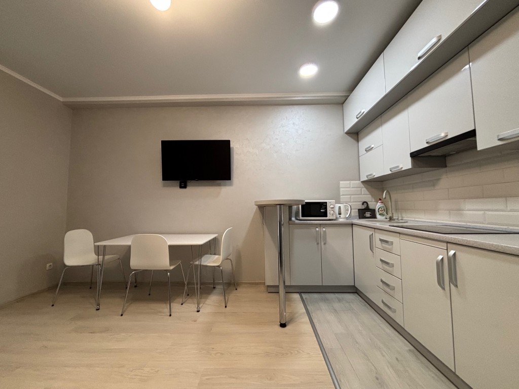 • Комфорт: Вбудована кухня (з усією необхідною технікою та посудом), простора гардеробна, тепла підлога у ванній кімнаті.