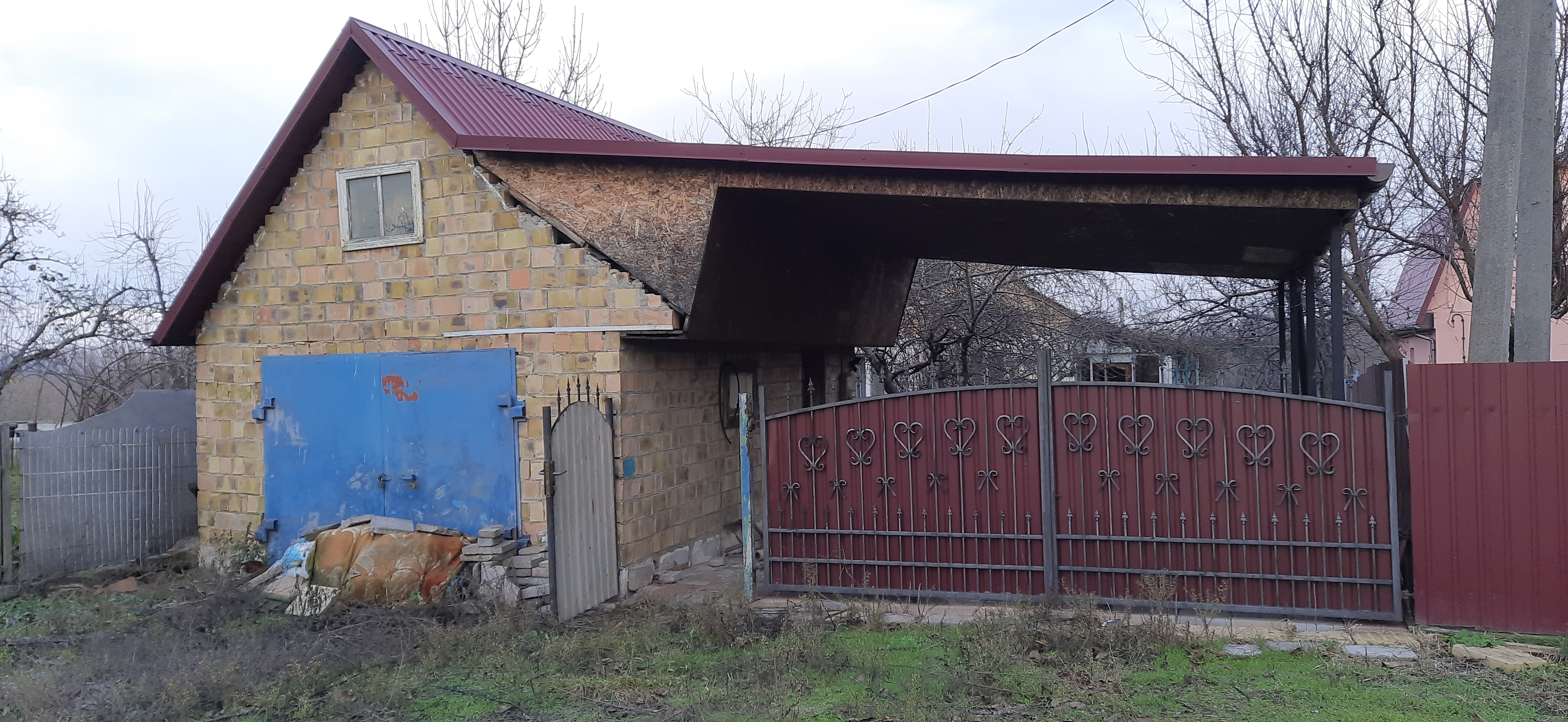 цегляний будинок з усіма комунікаціями, незакінченим ремонтом у селі наприкінці житлової, асфальтованої вулиці Медова простора ділянка двадцять соток, під схилом до лісопосадки вода насосна з криниці, опалення газовий котел, меблі.