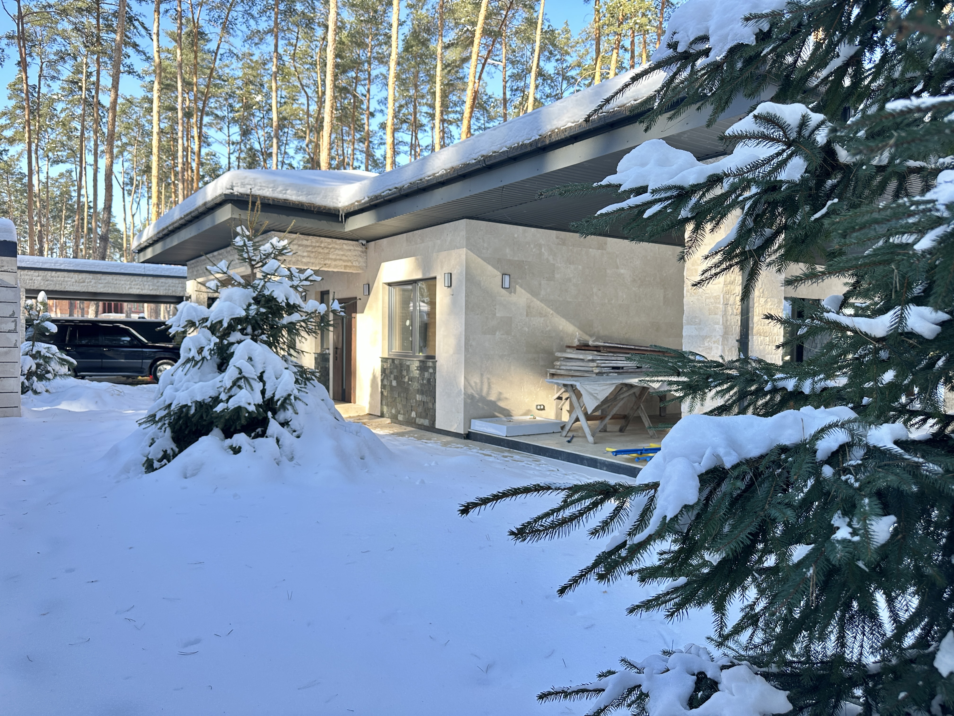 Стильний одноповерховий будинок в оточенні соснового масиву. Тихе, престижне місце з відчуттям заміського комфорту. Асфальтована вулиця.