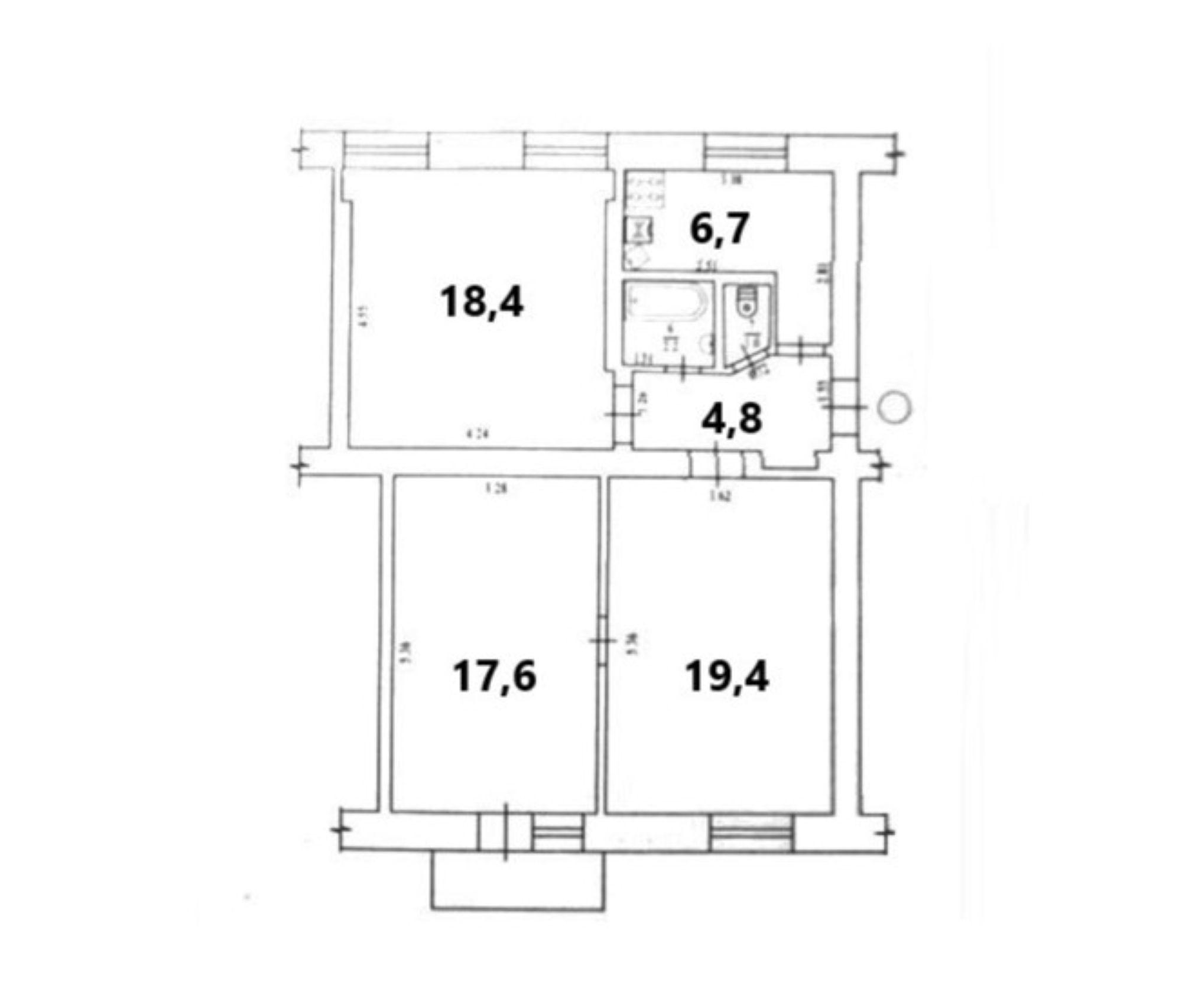 -дві окремі кімнати 19, 4 м² та 18, 4 м²