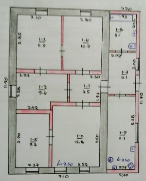Высота потолков в доме 2,35 метра.