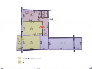 Общая площадь - 64,4 кв. м., жилая-43,8 кв. м, кухня- 7,5 кв. м.