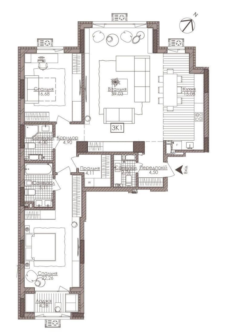 Загальна площа: 122.7 кв.м