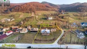 Земельна ділянка, площею - 0,25 га та поруч можливо докупити сусідню суміжну ділянку, площею - 0,2436 га. Добрий під'їзд до будинку, чудові краєвиди, екологічно чиста територія, поруч річка та ліс, прекрасне місце для проживання великої родини в селі.