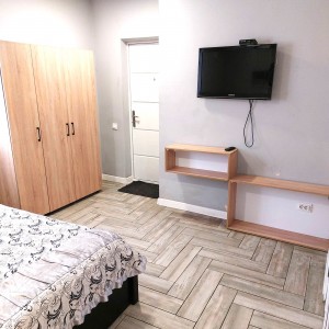 Загальна площа - 96,7 кв.м: перший поверх - дві ізольовані смарт-квартири, кожна з кухнею та санвузолм, по 22 кв.м, з євроремонтом та теплою підлогою. Повністю укомплектовані мебліми (дивани, ліжка, вбудовані кухонні меблі, столи, стільці) та побутовою технікою (тв плазми, холодильники, мікрохвильові пічі, варочні плити, пральні машини, кондиціонери, бойлери). другий поверх - 50 кв.м з окремим входом з вулиці, свої сходини. Квартира без меблів, зроблені всі виводи під комунікації, обладнаний санвузол.